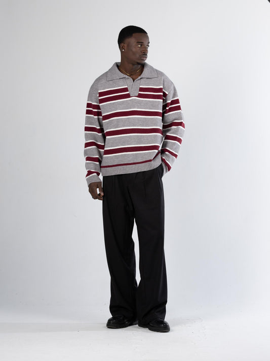 Knitwear stripped-grey&red