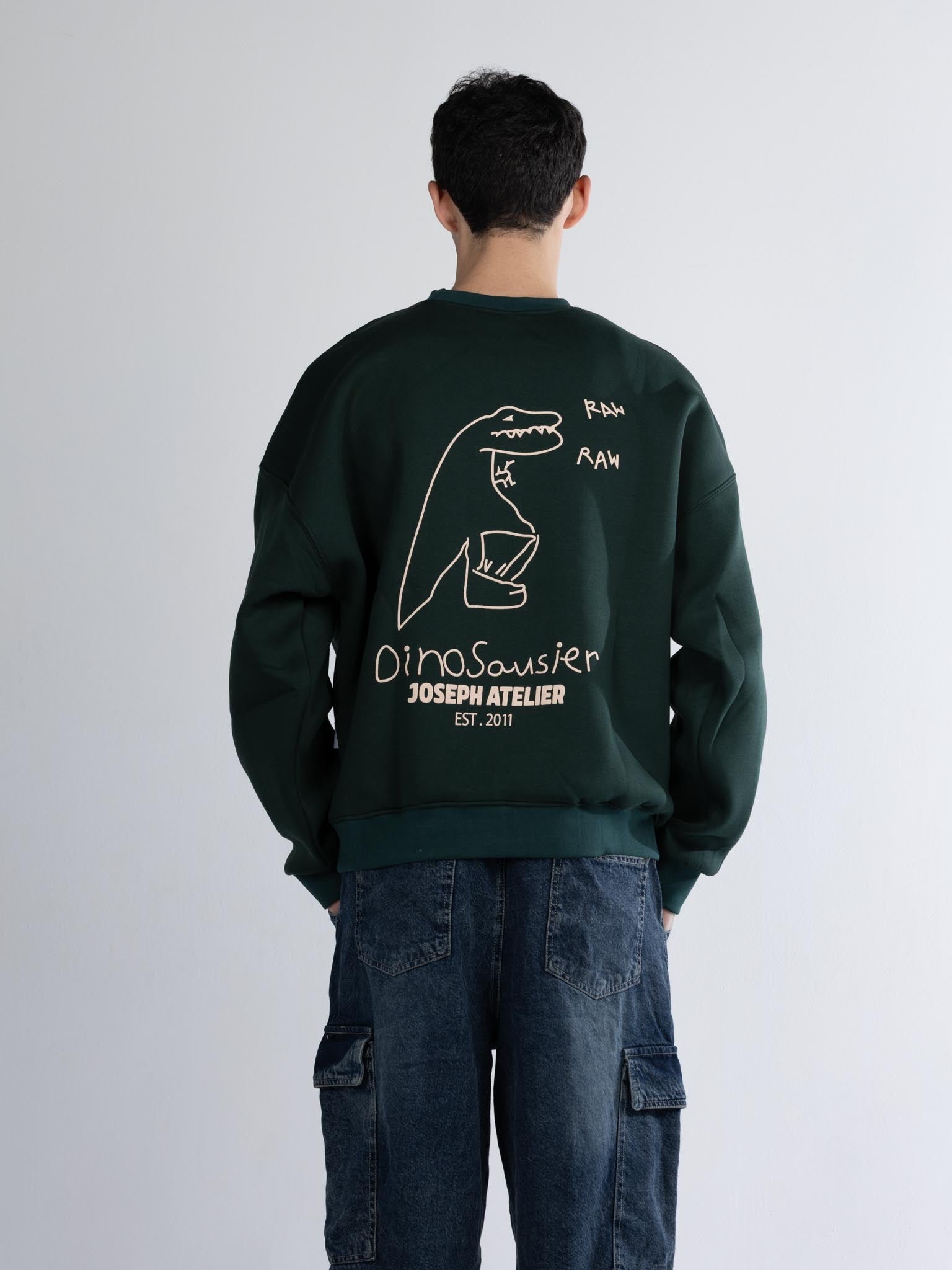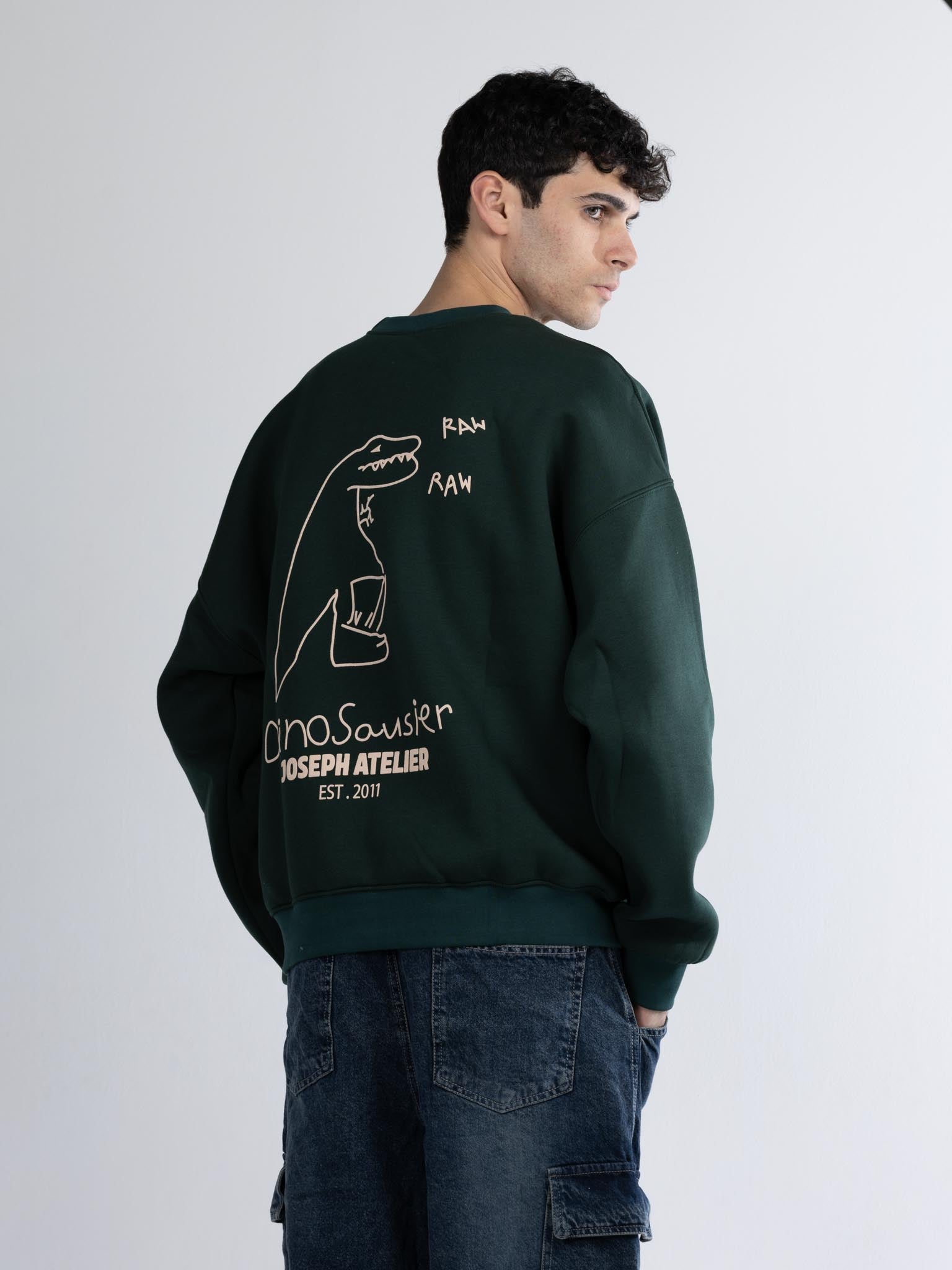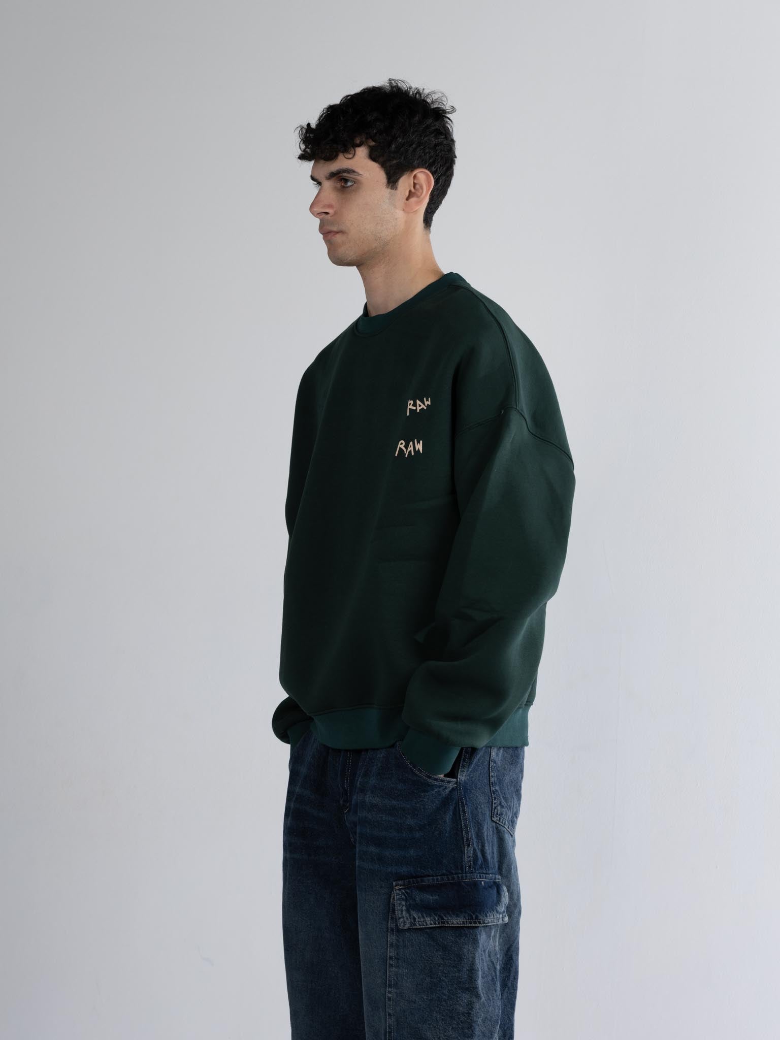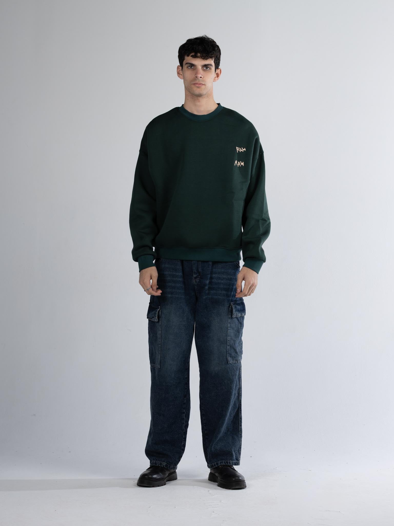 Crew neck raw dark olive
