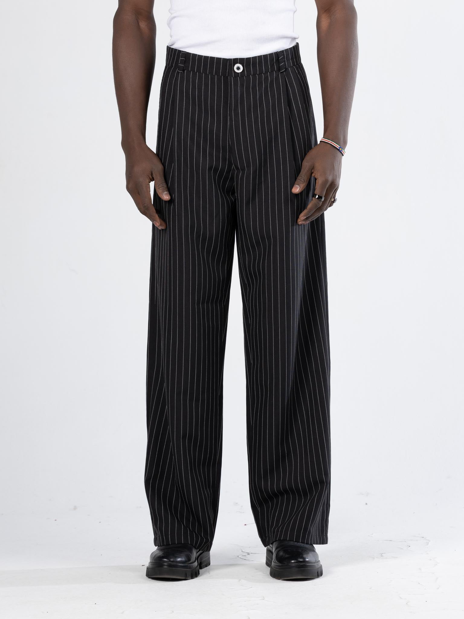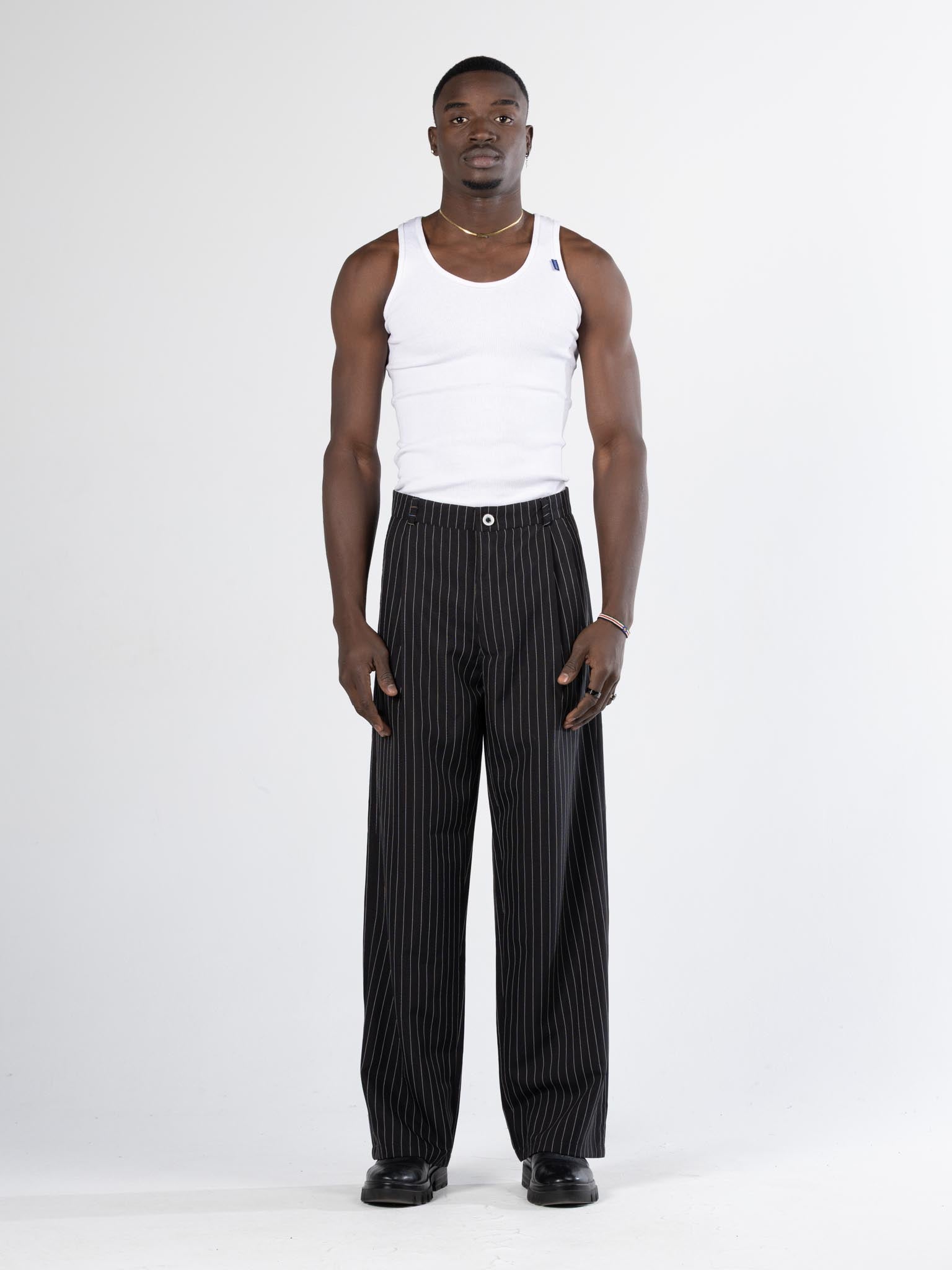 stripped Chino -black